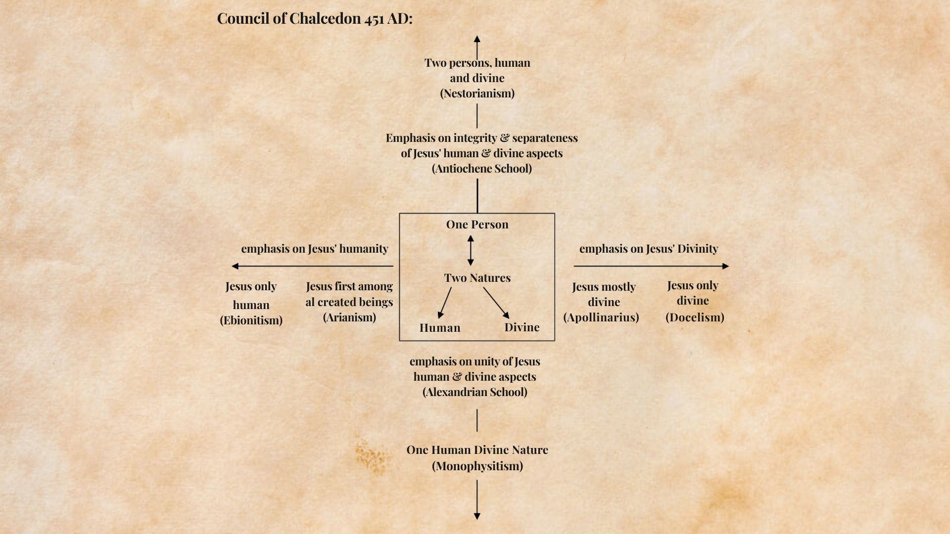 These diagrams summarize the major church divisions after Chalcedon and the Christological debates behind them.